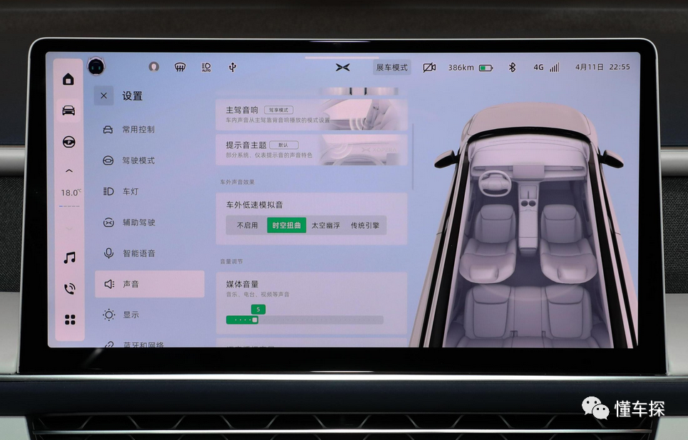 并且它有着三种车外低速模拟音,分别是时空扭曲、太空幽浮、传统引擎,或者也可以选择不启用。