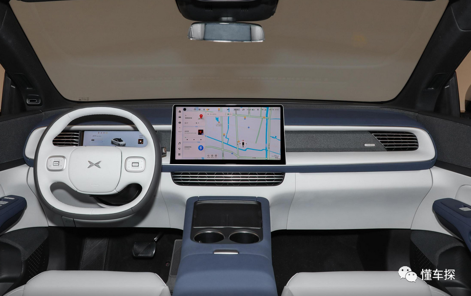 而它的前排座舱则有着简约的布局效果,它在中控中间用到了悬浮式显示屏,这块显示屏中间集成了丰富的应用和调节能力。