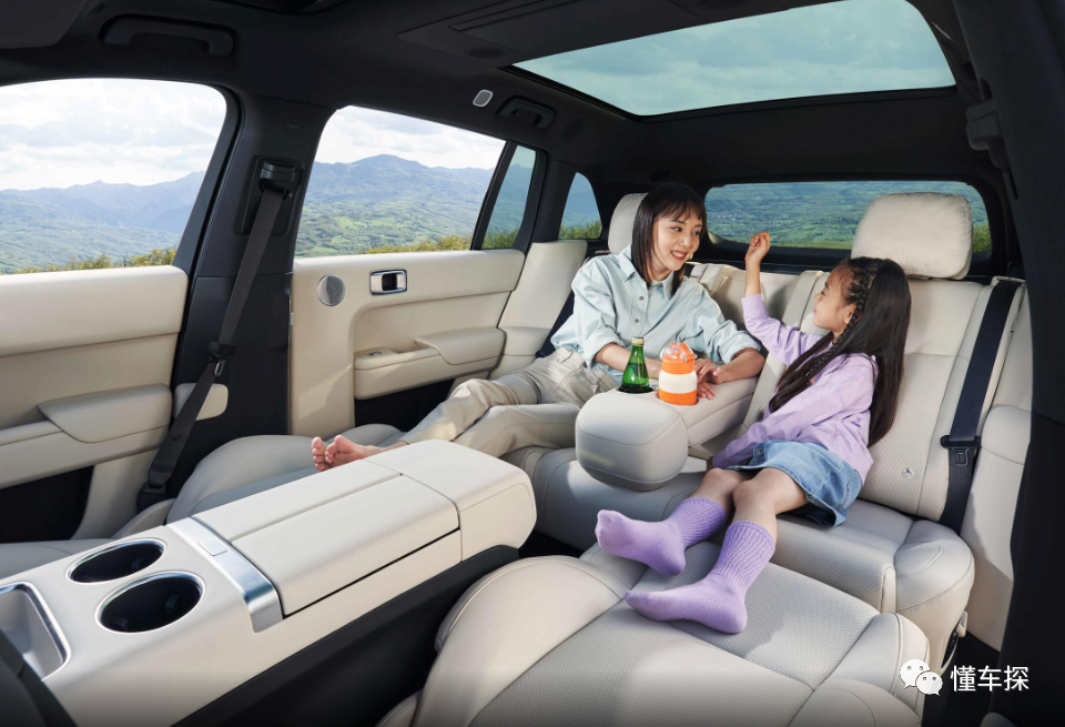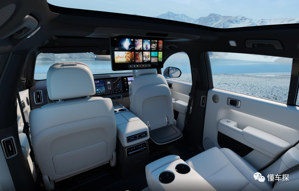 其实很多人对这台理想L7感兴趣,有一大部分原因便是该车的后排娱乐屏幕,但可惜的是,该车仅有顶配车型拥有这个配置,其它车型哪怕是选装配置也没得选,这一点属实是有些遗憾,但其实大家大可不必,因为这块吸顶屏幕,我个人认为就是个噱头,毕竟理想L7的座椅是支持前后排直接接平的,所以中控屏幕和副驾驶娱乐屏幕便足以满足用户观看影视的需求,在体验上虽然不如躺下仰头观看的那种仪式感,但外出野营的时候,有这样的舒适性配置,显然还是不错的。