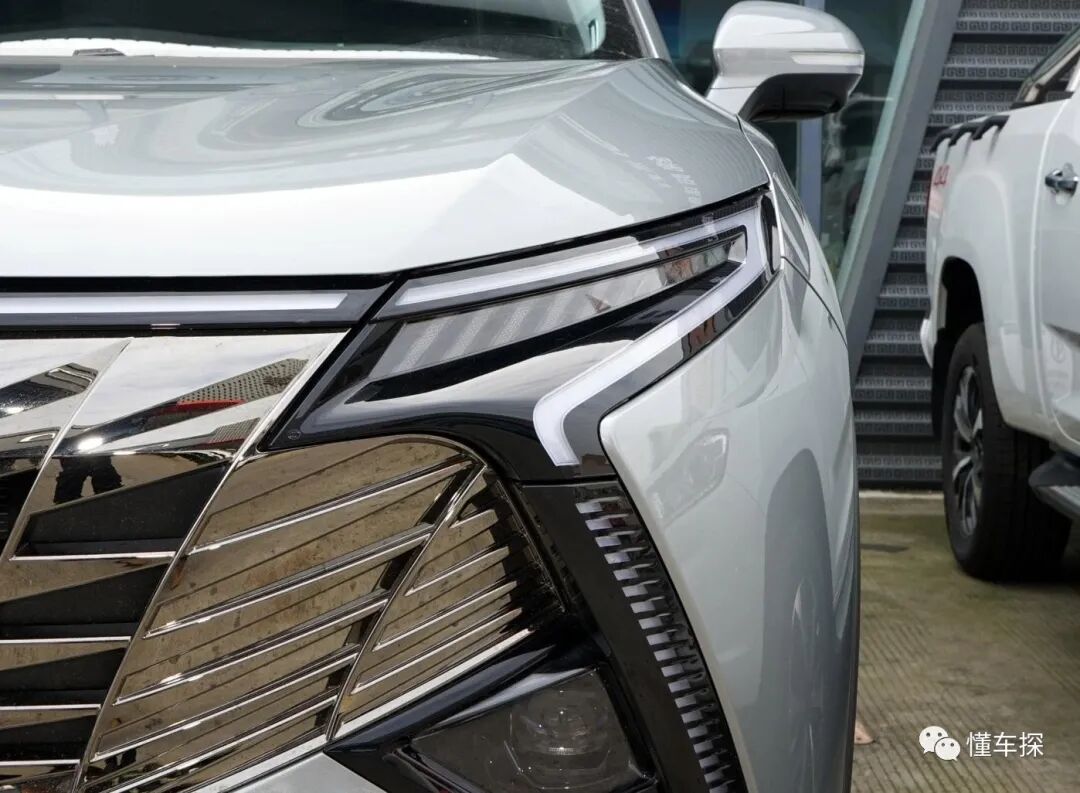 车头部分,凯翼昆仑采用了占比面积比较大的不规则进气格栅设计,并且进气格栅不但采用了黑化的处理,而且还与两边的大灯组相融合,所以车头看起来在拥有冲击感的同时还有着不错的整体感;此外,凯翼昆仑还用到了时下流行的分体式大灯设计,因此车头的时尚感和科技感也都呈现得不错。