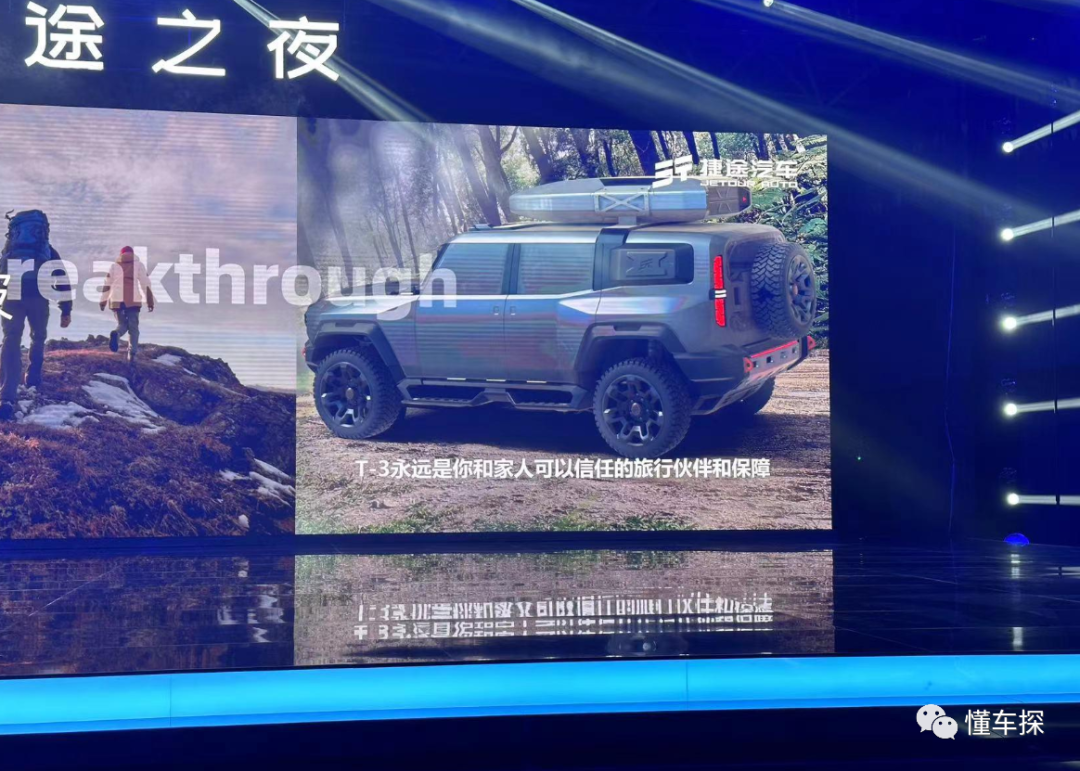 不过想要进入硬派SUV市场的车型可不只有上述提到的几家车企,像自主品牌中的“老大哥”奇瑞汽车,其实如今也在发力硬派SUV领域,在2023捷途之夜活动上,奇瑞子品牌捷途的新车捷途T-3概念车正式亮相,这款车就是一款硬派越野SUV,基于捷途昆仑平台打造。