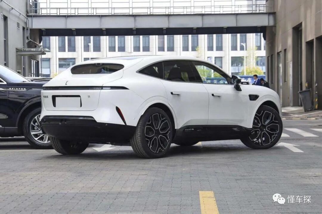 阿维塔11或许不是那种怎么样都讨喜的车型,它的封闭式前脸因为采用了全光带灯组,整体视觉重心会被抬得比较高;同时,车尾采用了超小风挡后,也通过溜背结构与高包围实现了高重心。