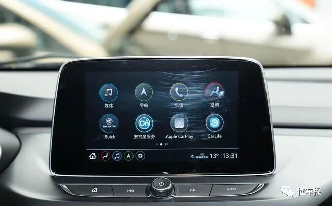 内饰中,昂科拉沿袭了家族统一的“飞翼式”布局,整体风格简洁流畅,没有太多花哨的视觉元素,有的只是过时的“朴实无华”。具体来看,2023年的今天,它依旧在使用双炮筒指针+小尺寸液晶屏组合而成的组合式仪表,其中液晶屏幕可以显示常用的行车信息,虽说美观程度一般,但有着良好的实用性。此外,该车还配有8英寸中控屏,支持CarLife/CarPlay手机互联,功能性和流畅度都比较一般,但考虑到手机互联功能的存在,倒也能适应。