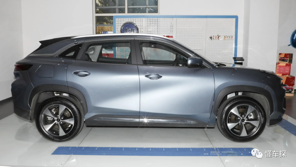 来到车身侧面,奇瑞大蚂蚁的侧身给人的感觉较为圆润,但是车身的线条还是比较柔和的,微微凸起的轮眉采用了拱形设计,配合多辐式运动轮毂的加持,进一步加强车辆的运动气息。