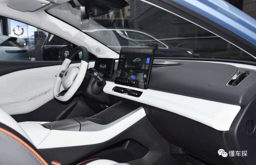 和外观一样,合创A06的内饰设计也采用比较简约的设计,中控台上采用悬浮式设计的全液晶仪表盘和多媒体屏幕,座舱内的科技感也很强。