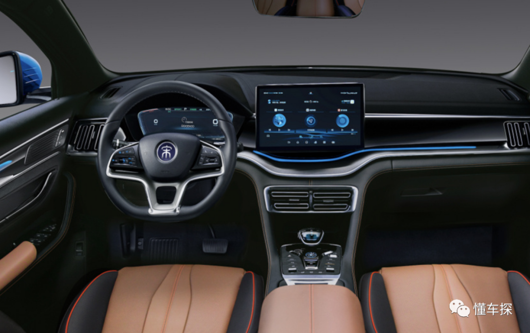 宋PLUS DM-i 51KM 两驱尊贵型采用的是传统双屏布局,12.8英寸的中控屏比较吸睛的是可以自适应旋转,便利性不错。