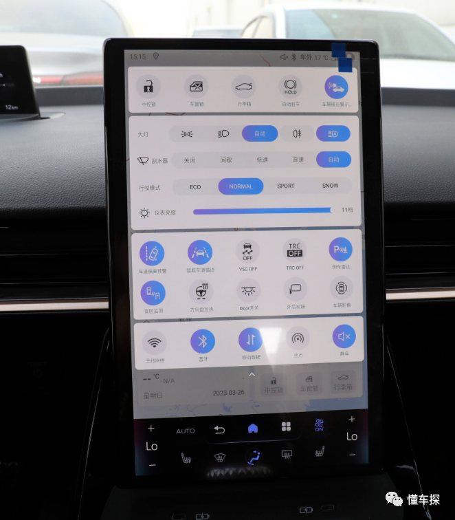 一汽丰田bz3车内最显眼的无疑是12.8英寸的中控屏,这款中控屏竖向设计,本身的清晰度较高,而且屏幕几乎没有颗粒感,摸上去十分顺滑。
