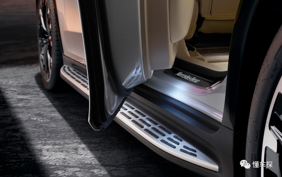 用灯光营造氛围感是奔驰家族一贯的特点,奔驰EQS纯电SUV也不例外,它的车门提供了照地灯,在打开车门时,会在地面上投射出星芒的图案,和格栅图案相呼应。