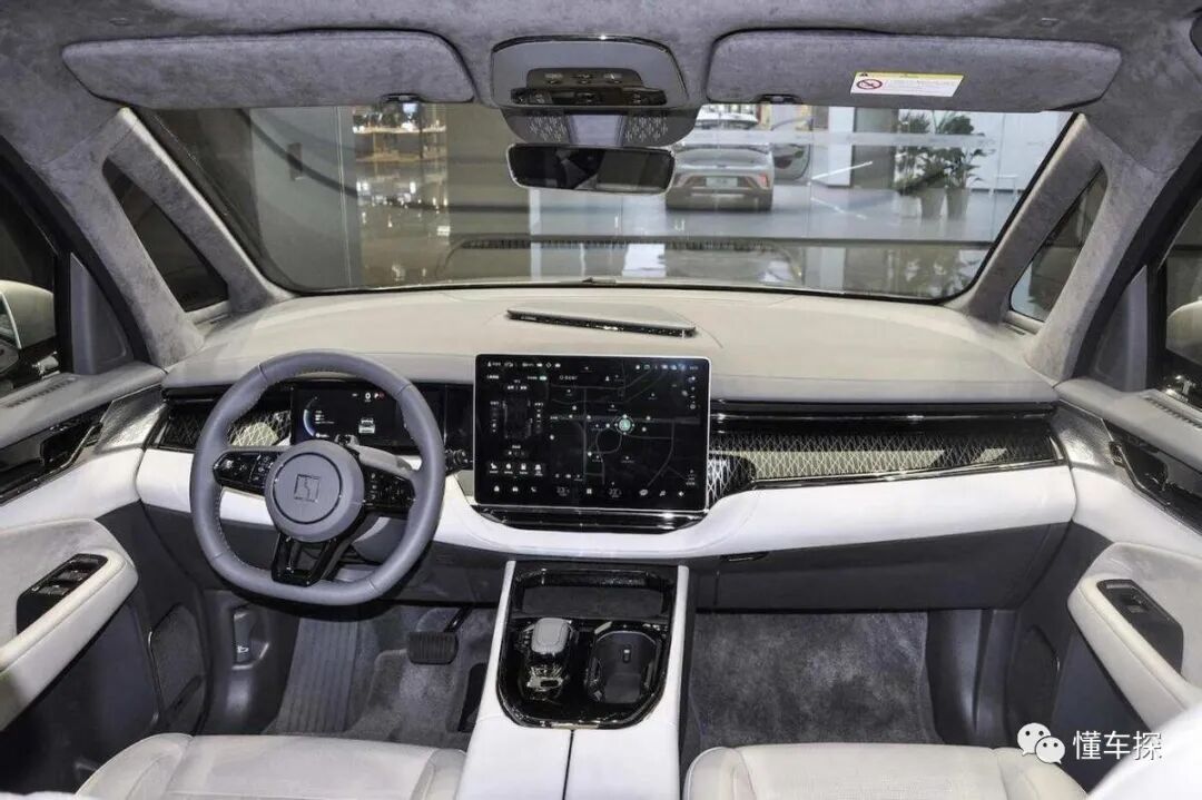 极氪009的中控台很是舒展,它像很多SUV与轿车一样带有了重心偏转,但它照样为了确保MPV在操纵上的便捷性,车辆还是采用了高位布局的电子挡把,并完成了整个换挡与扶手箱的贯穿连接。