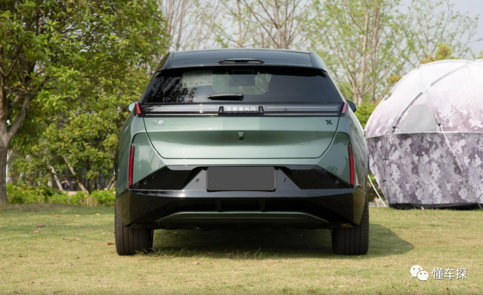 从尾部来看,可以发现极氪X尾部的中央布局其实与前脸还是有些相似之处的,丰富的车身线条也勾勒出非常明显的矩形样式。