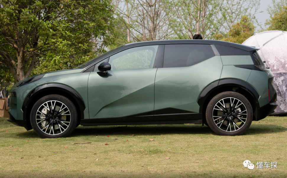 来到车侧可以发现,极氪X作为一台紧凑型SUV,并没有过分的强调轿跑SUV的车身姿态,反而这种从C柱才开始呈现弧度的设计,进一步的确保了后排乘客的头部空间,这一点确实是可以给个好评。