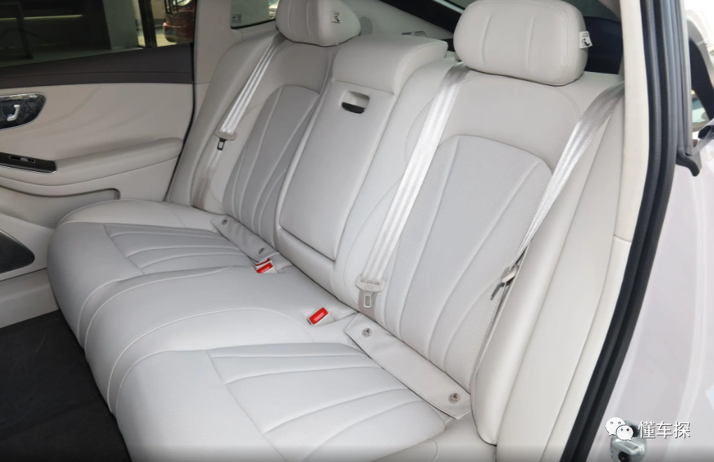 坐进后排,因为受到电池厚度的影响,后排座椅比较高,而且头顶因为受到车身形态的影响,空间确实略显局促。