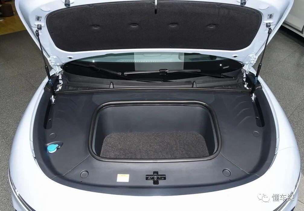 设计细节方面,除了会发光的岚图“Y”型LOGO外,追光还在前机盖表面设计了一个类似于“LOGO”造型的筋线隆起,而且得益于纯电平台打造的优势,它的机盖下方留下了一个储物空间不小的前备箱,虽然一般用不着,用了也很可能下车忘记拿取物品,但总归是有的。