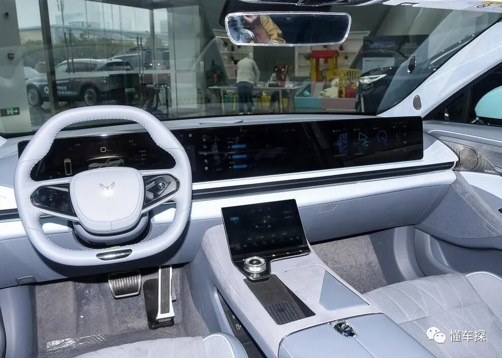 尤其是在选材用料上,在车内几乎找不到一处地方可以形容它廉价,平整的线条和简约的设计元素相互碰撞,视觉效果清新自然,有着和蔚来汽车相似的高级内饰氛围。