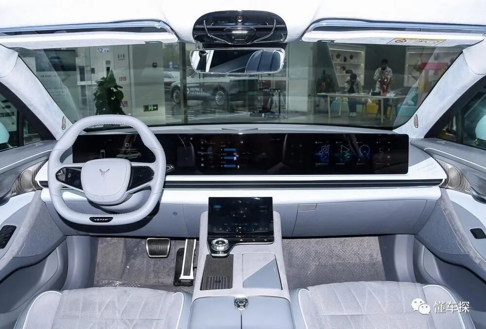 车内部分,厂家给岚图追光的定位是纯电豪华轿车,是和蔚来ET7同级别的新能源竞品,所以它内饰的主打风格也是豪华科技感。