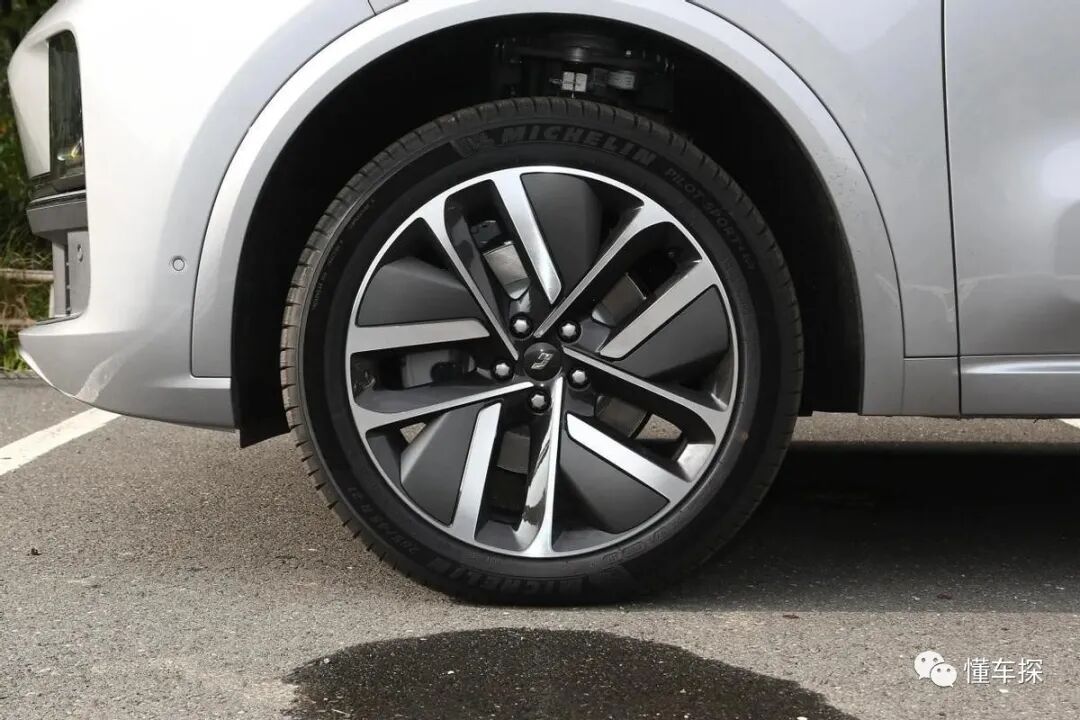 来到车身侧面,整体风格属于是简洁为主,基本没有明显的线条,不过凹凸不平的型面却带来了出色的光影效果和立体感,搭配前后轮眉处的设计和20英寸双色多辐式轮毂,运动感还是比较到位。