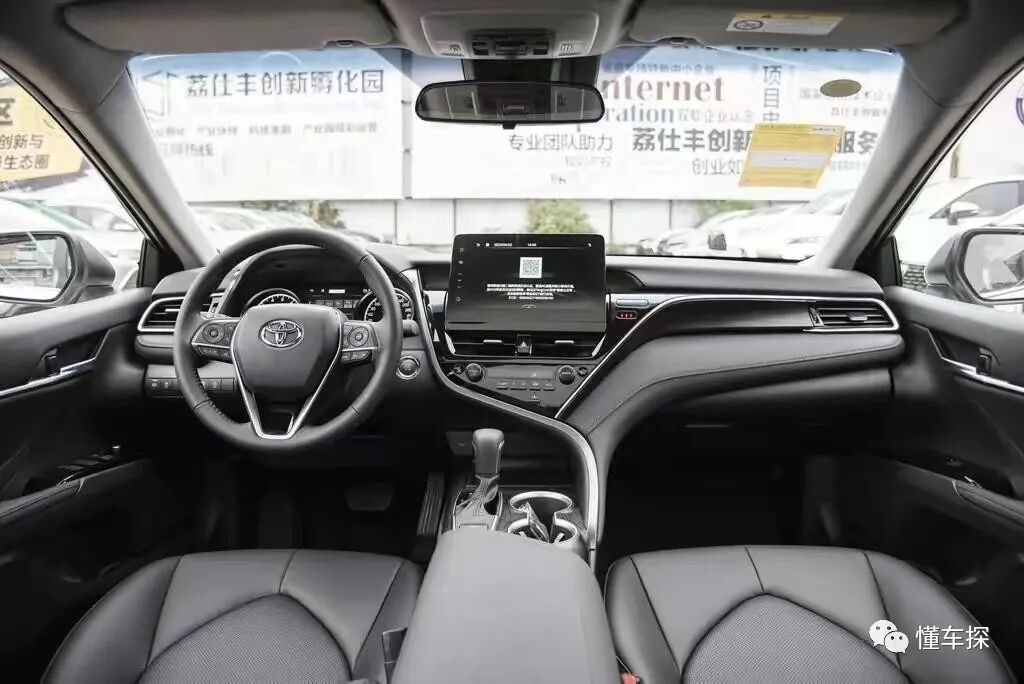 进入到丰田凯美瑞的车内,中控台布局同样十分前卫,分区的设计手法,整体看起来层次感分明。