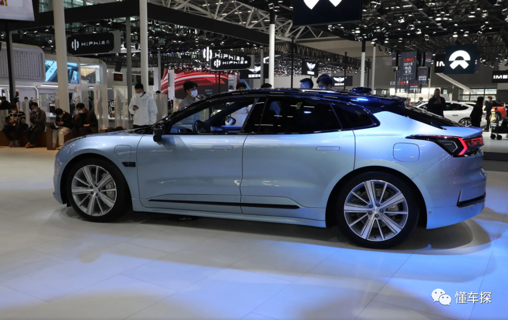 从侧面来看,猎装轿跑式的车身姿态就将它的运动美完全展现出来,同时再配合上21吋的大尺寸运动轮毂,更是让极氪001的车侧看起来更具力量感。