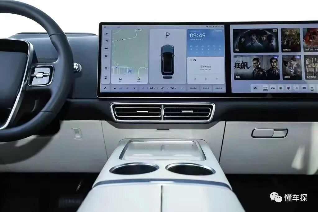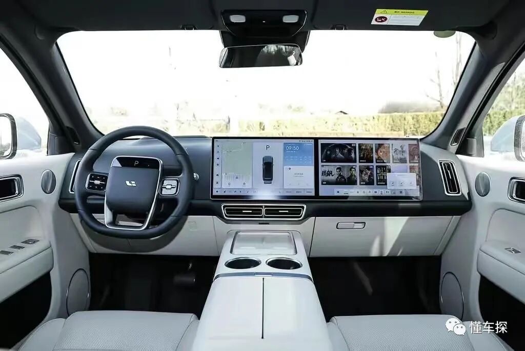 内饰方面,理想L7仍是家族式设计附身,取消了传统仪表盘设计,设计在一侧的双联屏,较好提升了座舱的科技感。