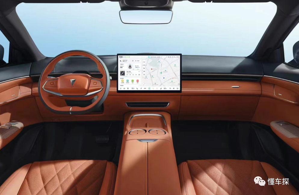 简洁大方的内饰继续做“减法”,平直的中控台上没有任何物理按键,就连传统仪表盘也没有,这也是跟SL03的最大不同之处。