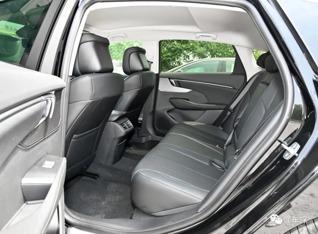 后排座椅的靠背角度稍显偏直,不过好在腿部的腿托是向前延伸的状态,所以乘坐起来非常舒适。