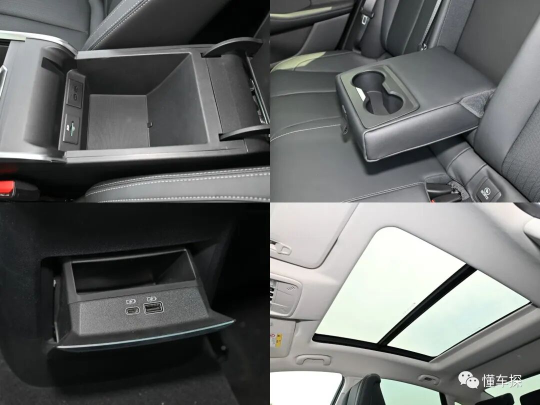 后排配备了带有两个杯架的中间扶手、两个独立的空调出风口以及两个USB充电接口,B级行政车该有的配置一样都不少。