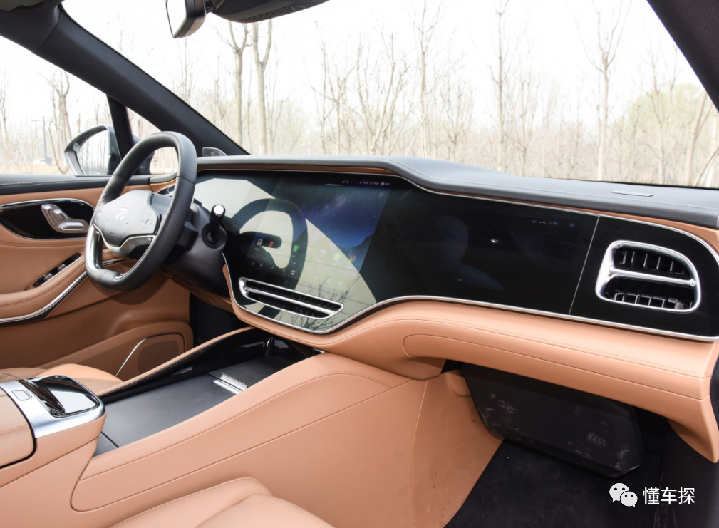 座舱内部则比较注重科技感,配备AR-HUD+宽幅真彩三联屏,看着视觉冲击感较强。