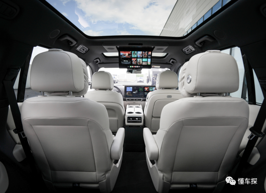 车内的第一排、第二排座椅都有加热/通风/按摩功能,并提供第三排座椅加热、后排小桌板和后排液晶屏幕,相当于车内有大沙发和彩电等高端配置,旅行中坐在后排可享受头等舱体验。