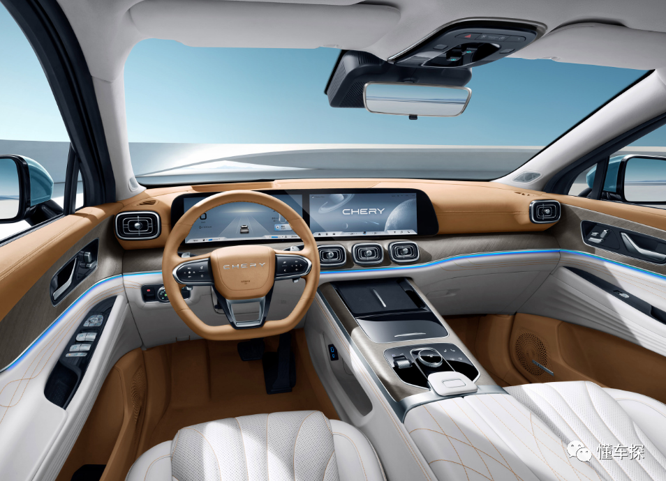进入汽车内饰部分,奇瑞瑞虎9一改人们对奇瑞的固有印象,走的是高端、豪华路线。