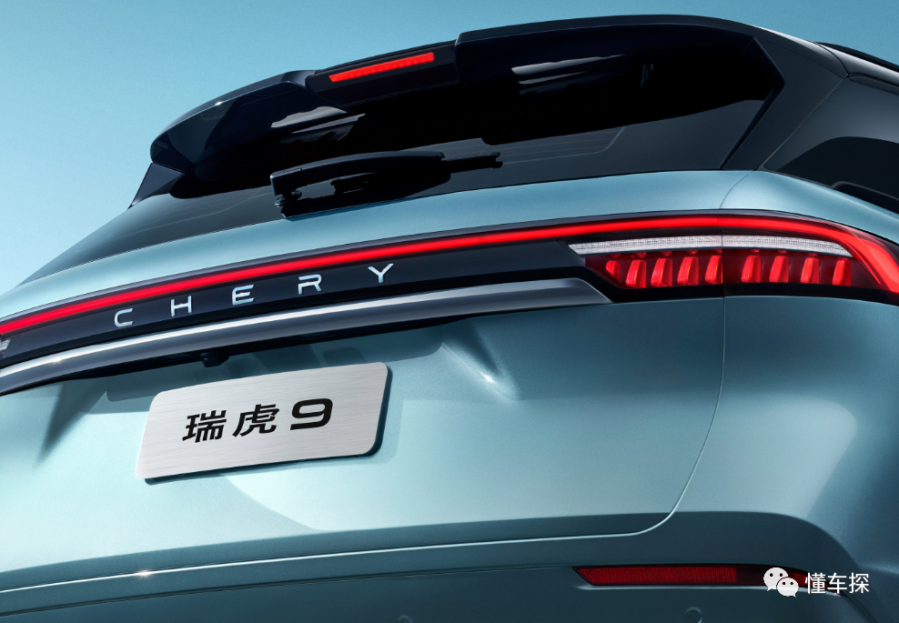 车尾部分,奇瑞瑞虎9使用贯穿式灯带,而灯带下方是写有“CHERY”英文字母的饰条,这是奇瑞很常见的设计思路,既能彰显品牌价值,也可以提升车辆本身的辨识度。