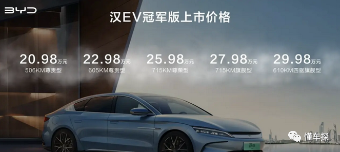 如果说手握20多万元,不想考虑传统的合资B级车,那么汉EV冠军版确实也是值得一看的。