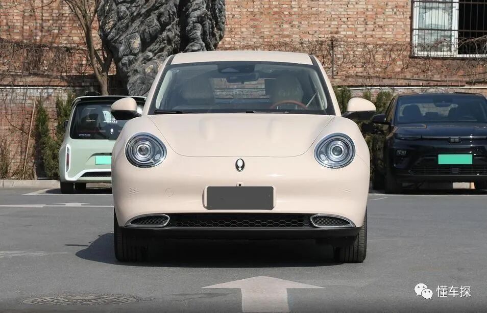 在细节设计上,车头采用了电动车常见的封闭式设计,前脸两侧配有辨识度出众的“猫眼”LED大灯组,另外两侧外凸的轮拱呈现出一定的力量感,整体设计简洁大方、呆萌可爱,符合年轻女性的审美喜好。