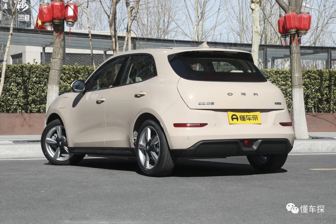 车身尾部,新款欧拉好猫采用了尺寸并不算很大的扰流板设计,有利于运动感和层次感的提升,整体看上去比较时尚。