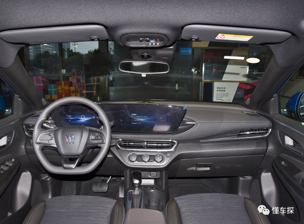 别克昂扬内饰部分中最吸引人的还是它偏向主驾驶座椅摆放的一块双联屏,这两块屏幕的大小都为10.25英寸,双联屏的形状不是常见的长方形,而是两侧都带有向里倾斜的角度,看起来特别像一个展开的扇形,而这样的设计也增强了车内的科技感。