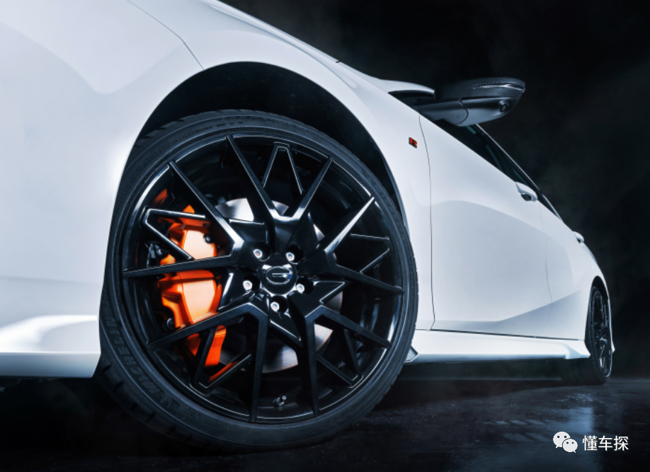 黑色大轮毂和橙色刹车卡钳,以及双边四出的排气系统,都让这款车更具时尚感和动感。