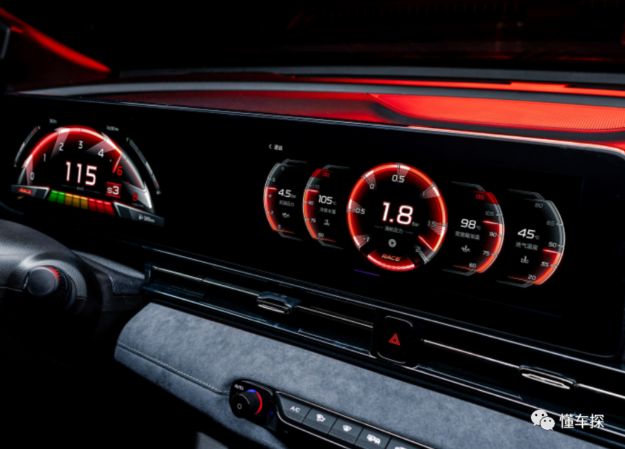 仪表和10.25英寸中控屏组成的液晶屏可以显示机油压力、涡轮压力、水温、进气温度、变速箱油压力等很多信息,并且车机功能也与其它售车型保持一致。