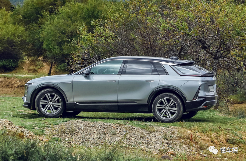 凯迪拉克LYRIQ锐歌是一款SUV,但它拥有的并非一个常规SUV的车体结构,它有着超过5米的车长,同时还采用了跨界的溜背轿跑顶部设计,而这样的溜背顶部本身就有拓展车体长度视觉效果的作用,再配合它本身就很出色的车长,它的车身侧面会直观带来“长且扁”的视觉效果,但是这样的车身长度并不会让人感觉到太过突兀,而是让人的目光不由自主的转移到了它的溜背部分,因为在这个地方,有着车尾延伸而来的灯带,也在车侧增加了看点。