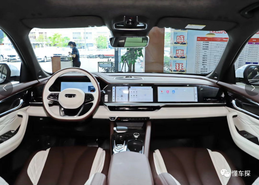丰富且对比鲜明的车内配色,以及大量经过缝线工艺处理的皮质软包覆盖,满眼看去尽是豪华,而三块12.3英寸的三联屏设计,贯穿了整个中控台,则是体现出强烈的科技感。