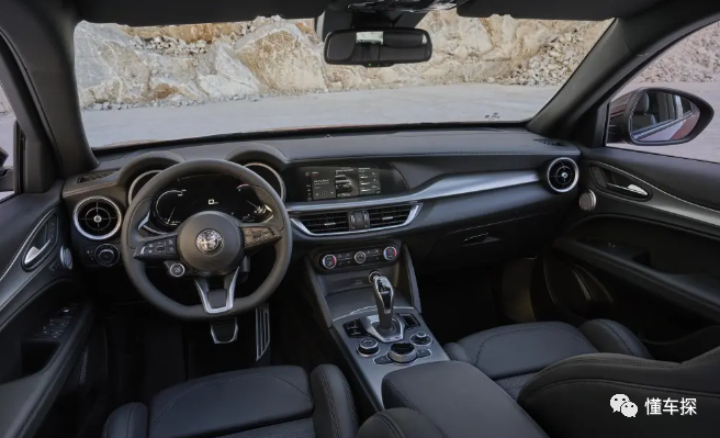 如果让我用一句话来形容全新阿尔法·罗密欧Stelvio的内饰设计,我想我会说“极具机械素质”,新车的内饰设计并不像我们认知中主流车型的那种科技质感,而是拥有很强的机械质感,这一点或许与阿尔法·罗密欧主打驾控这一方面有所联系,但是新车仍然将多媒体控制屏幕的尺寸升级到了12.3英寸,而且仪表盘还支持运动/舒适/传统三种显示主题,这里另外一提,根据阿尔法·罗密欧官方的消息来看,全新阿尔法·罗密欧Stelvio的仪表盘还可以营造出上个时代60年代Giulia车型的仪表盘布局,情怀可以说是拉满了。