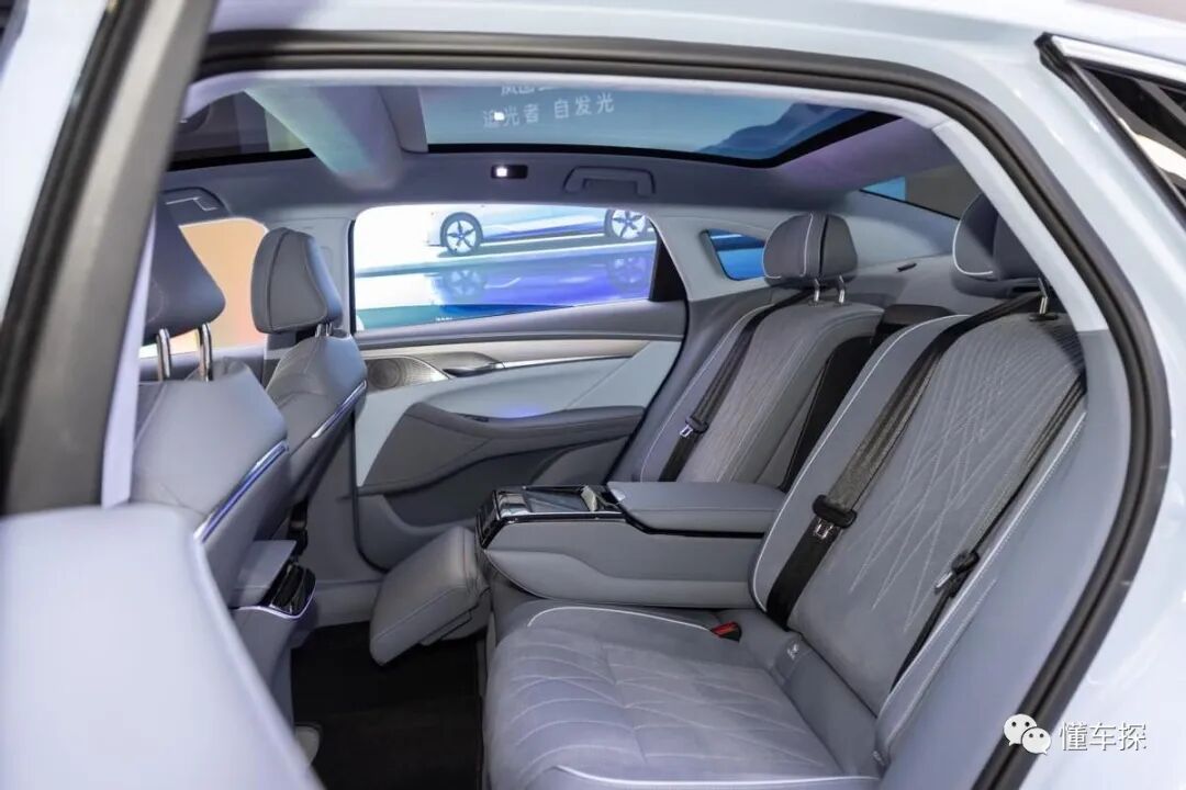尤其是在舒适性配置上,这台旗舰型的追光,它在前后排都有电动调节,后排还有和7系一样的液晶屏,包括加热/通风/按摩这些配置,这台追光也是标配。
