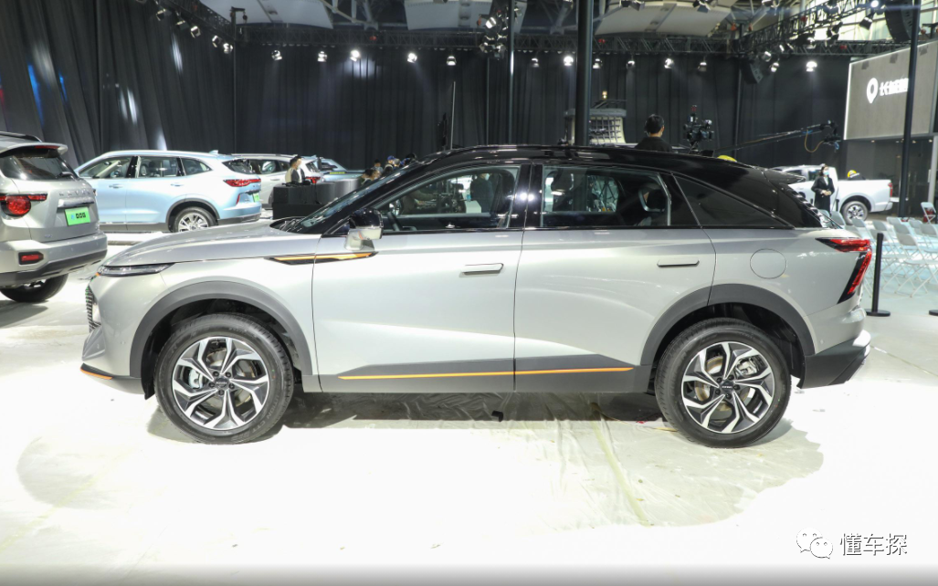 为呼应整体设计风格,前翼子板处以及侧裙处均加以橙色装饰线条进行点缀,与常规家用SUV做出明显区别。