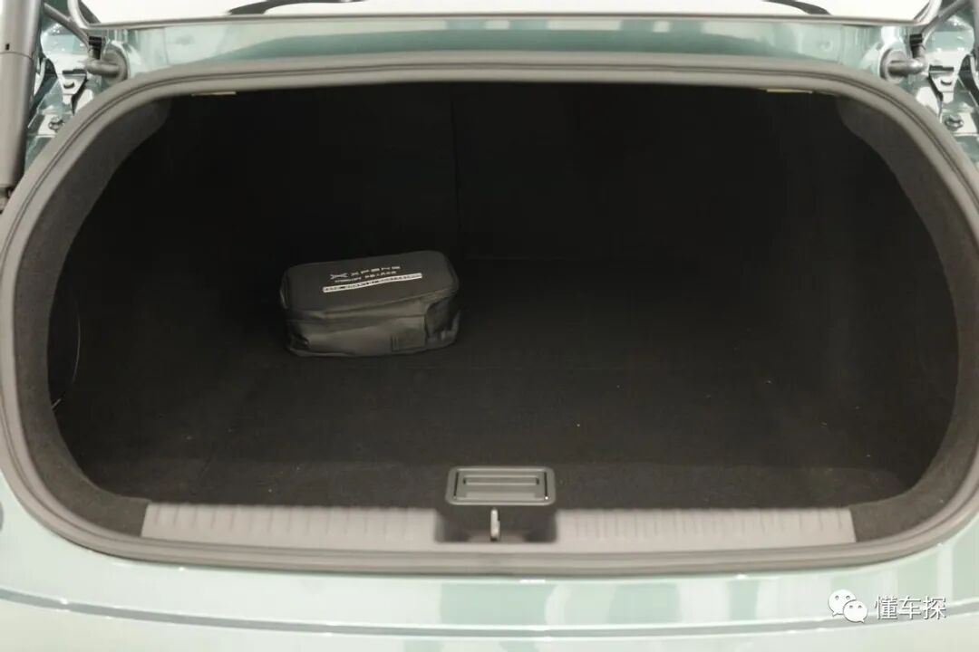 尾箱是常规的三厢轿车式尾箱,并没有因为溜背式设计而给出大斜率开口的真掀背式尾门,这一点和蔚来ET7、ET5、奔驰EQE是一样遗憾的。