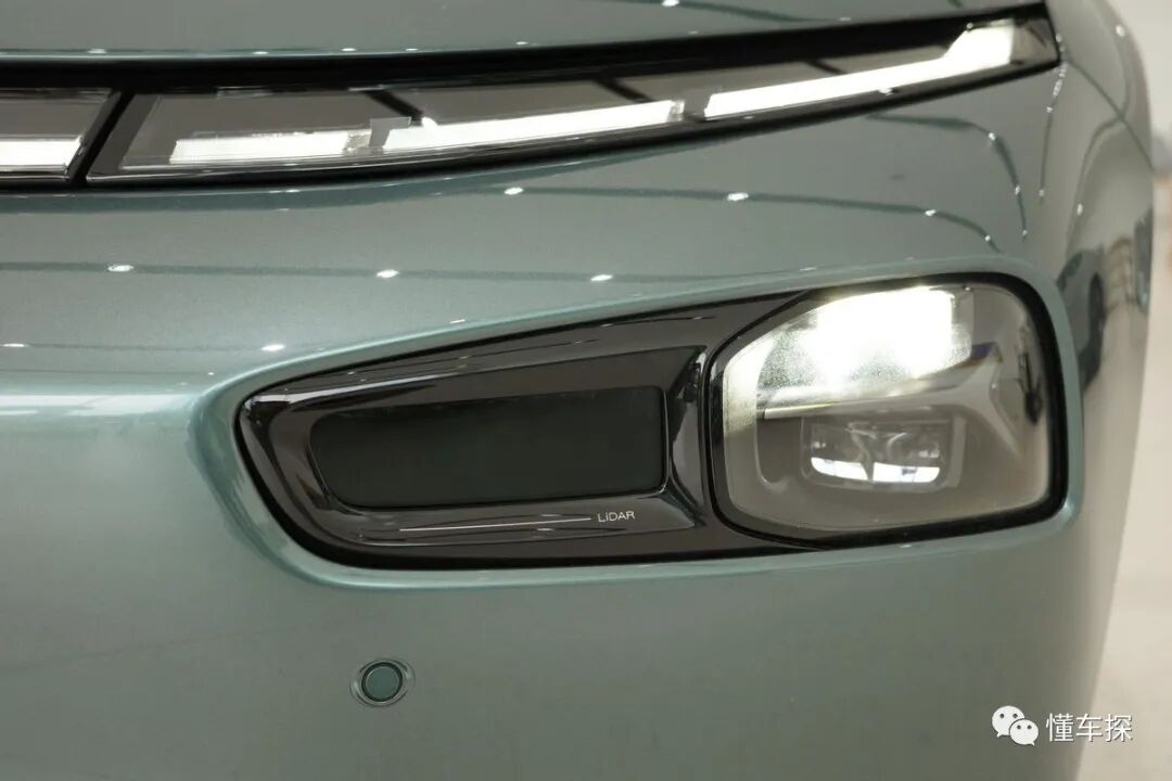 前脸部分的变化主要在于大灯位置进行了重新设计,并增加了两颗激光雷达,位置都出现于前大灯内侧,和大灯进行了整体式设计,相比大灯的位置稍微倾斜靠前。