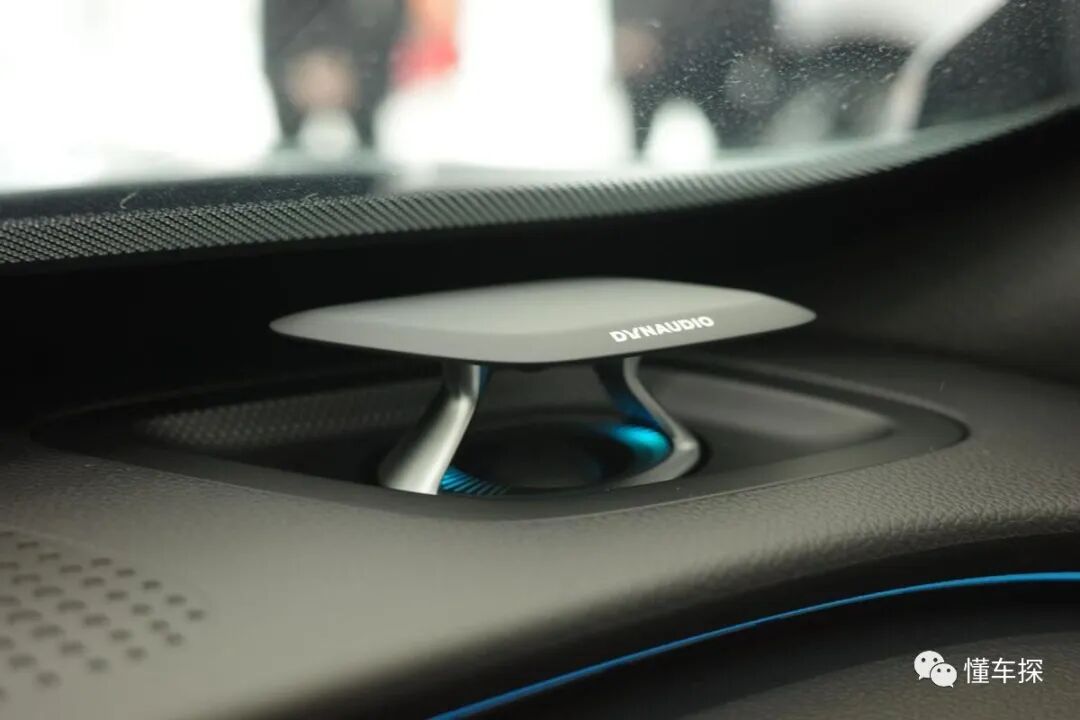 音响则标配了支持7.1.4杜比全景声的20扬声器+独立功放系统,前排仪表台两侧的飞碟状小扬声器还是可以自动升降的。