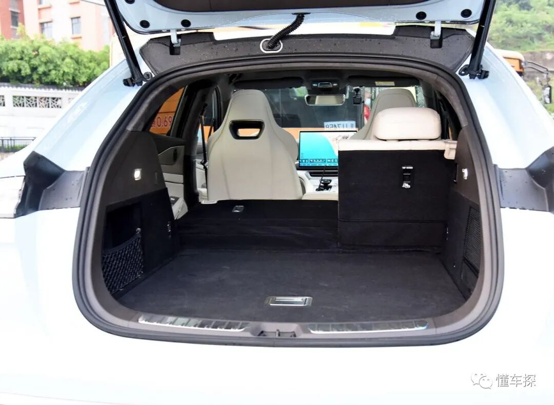 并且腾势N7的后排座椅还支持4/6比例放倒,放倒座椅后椅背能够与后备厢之间几乎形成纯平,在装载一些大件物品时会比较便利。