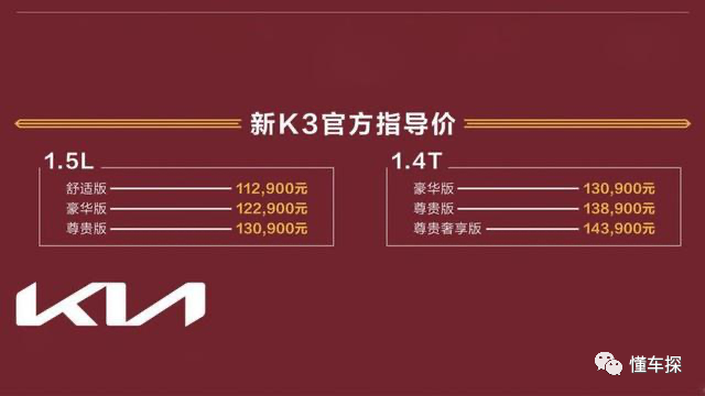 就在今年起亚K3完成了新款上市,共推出6了款车型配置,官方指导价11.29-14.39万元之间,价格的正常紧凑级轿车的水准,但上市之后直接官降2.3万元,顶配车型12万元左右即可入手。