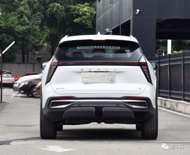 吉利博越L使用隐藏式排气,车辆的后包围十分厚重,看上去并没有很强的战斗属性。