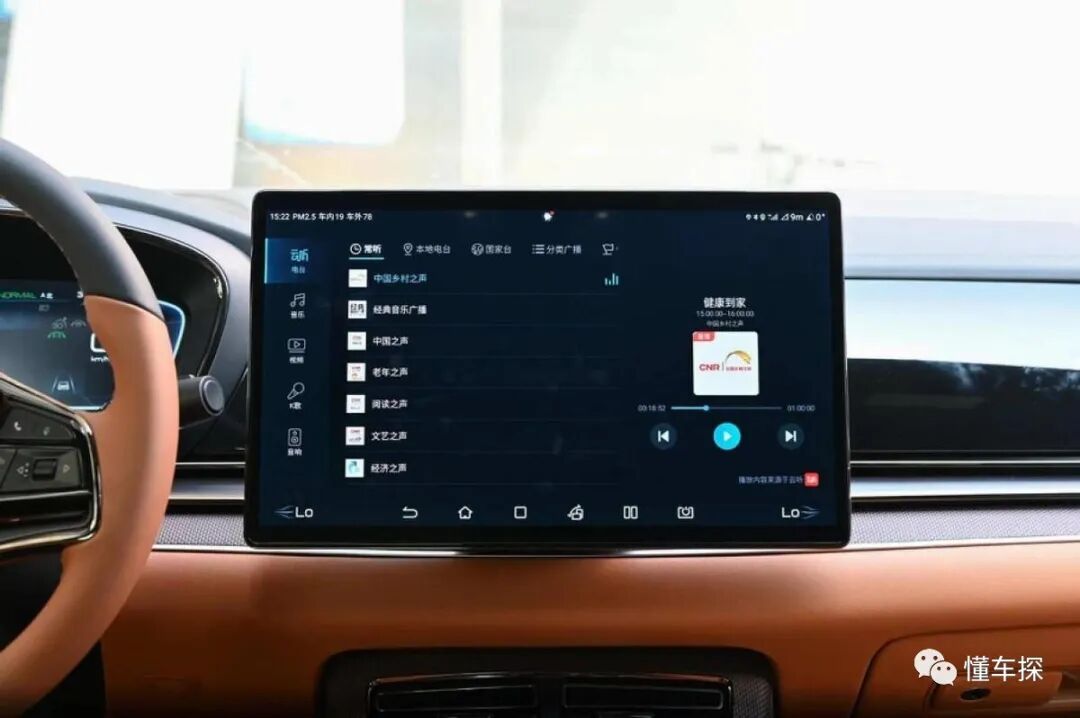 走进车内,比亚迪汉DM采用了层叠造型的中控台布局,立体的台面通过边角的圆弧状的包围,给车内带来更强的环抱式氛围。