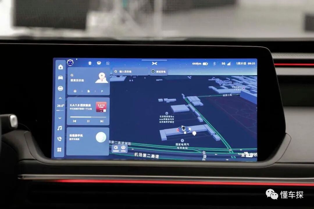 在进入到驾驶舱之后,它不光有前面提到的标准化舒适配置,智能方面我们能见到10.25英寸数字仪表盘与14.96英寸液晶触控屏这对老搭档,但这样的基础上,高通骁龙8155芯片成为了标准配置,并一并带来了对5G通讯网络的兼容,高精地图模块、人脸识别摄像头等不同类型硬件也加入进来,这让Xmart