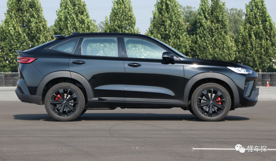 作为一辆轿跑SUV,它是采用了一点溜背的设计风格的,从而也让车辆侧面的造型看起来不那么死板。